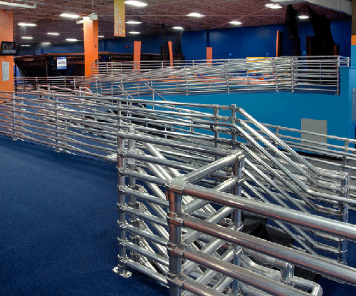 Their superior design means that the rail can provide years of service with little to no maintenance. They can also be easily reconfigured to adjust to park's changing needs over time. You can easily add more rail and fittings to handle longer lines, or adjust the overall shape of the queue line pretty quickly and easily.