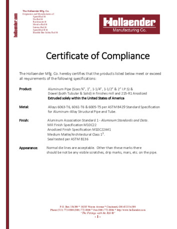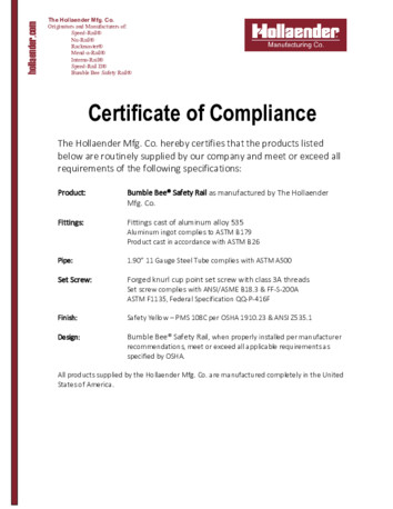 Below is Hollaender’s certificates of compliance for each product group.